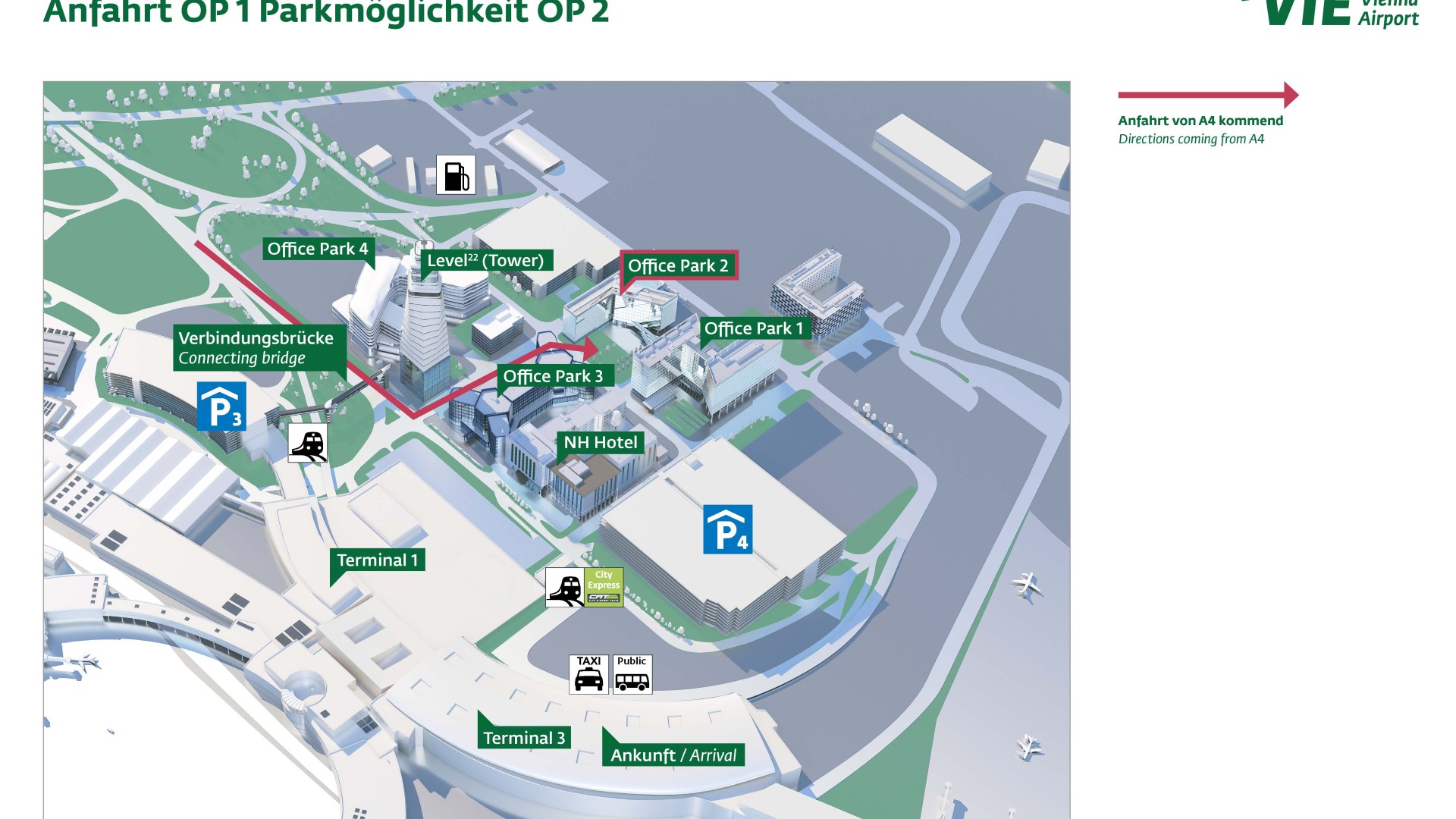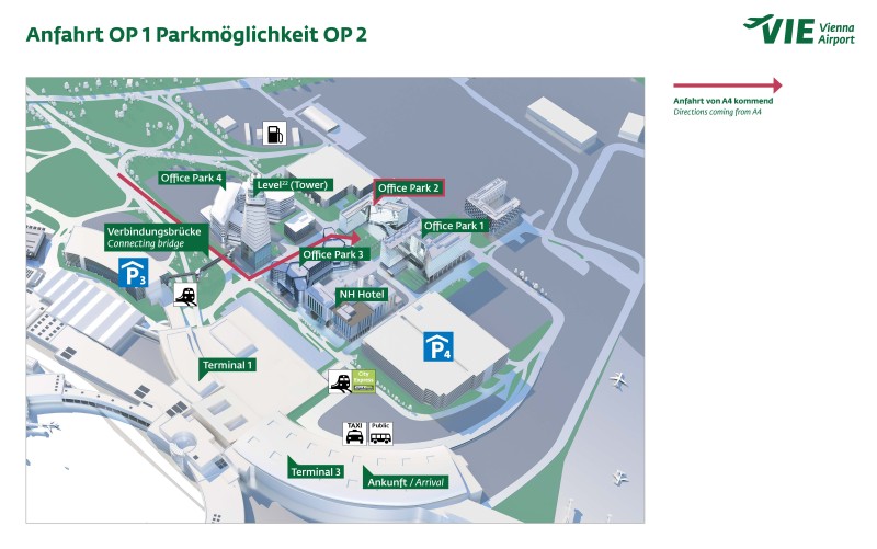 a tunnel linking Car Park 4, the terminal, and the train station, provide direct access to Vienna AirportCity.